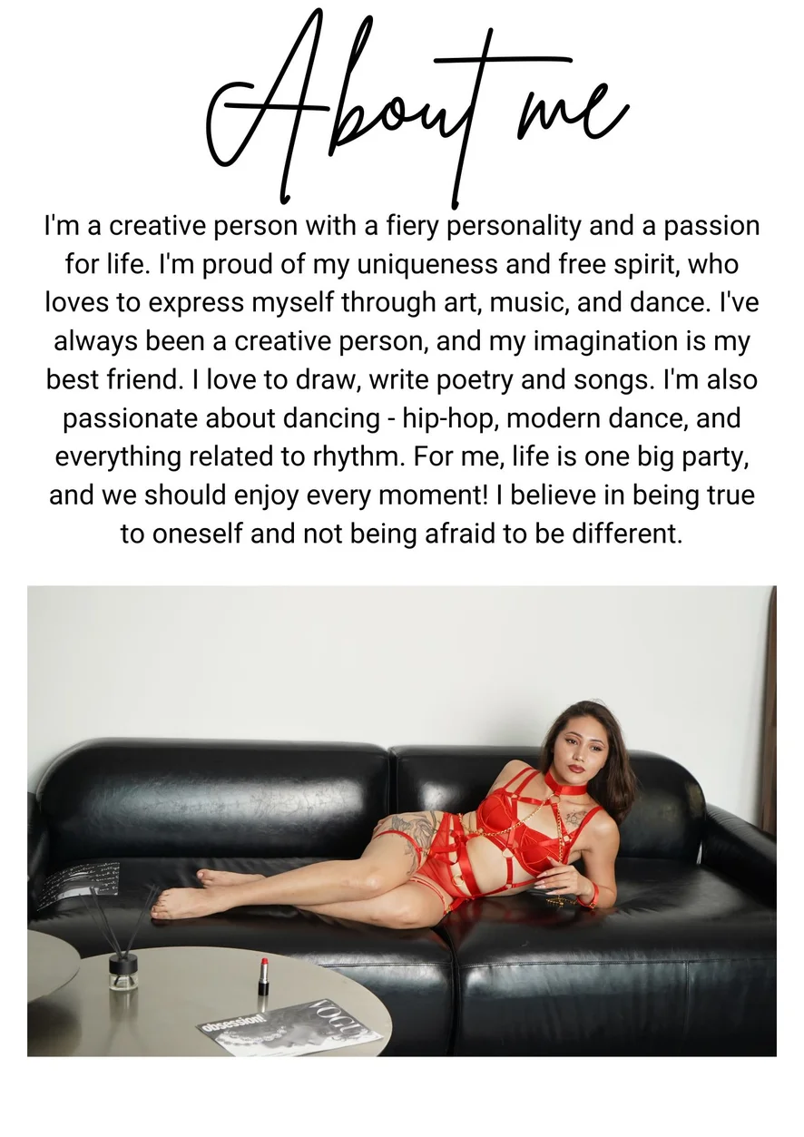 Ahegao, Camel Toe, Dirty Talk, Flashing, Yoga, Heels, Gagging, Leather, Corset, Latex, Massage, Erotic Dance, Oil Show, Spanking, Foot Fetish, Doggy Style, Cowgirl, Footjob, Topless, Twerk, Nipple Toys, Dildo or Vibrator, Handjob, Jerk-off Instruction, Fingering, Masturbation, Blowjob, Orgasm, Sex Toys, Striptease